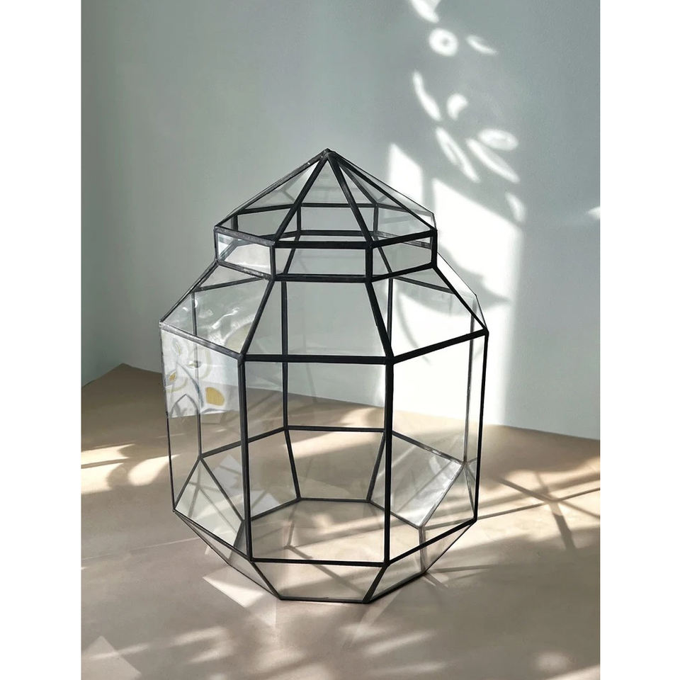Diseño moderno Vidrio transparente Borde de metal Terrario geométrico Florero de vidrio Jardín Decoración natural Terrario Hogar Mesa Oficina Deco