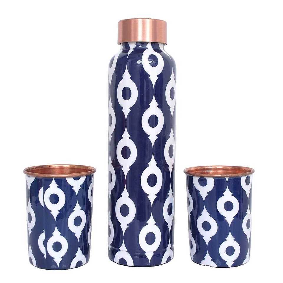 Botella de Agua de Cobre de Diseño Moderno con Dos Vasos (Tumblers) de 800/900 ml de Capacidad, Termo de Vacío para Viajes con Aislamiento Térmico