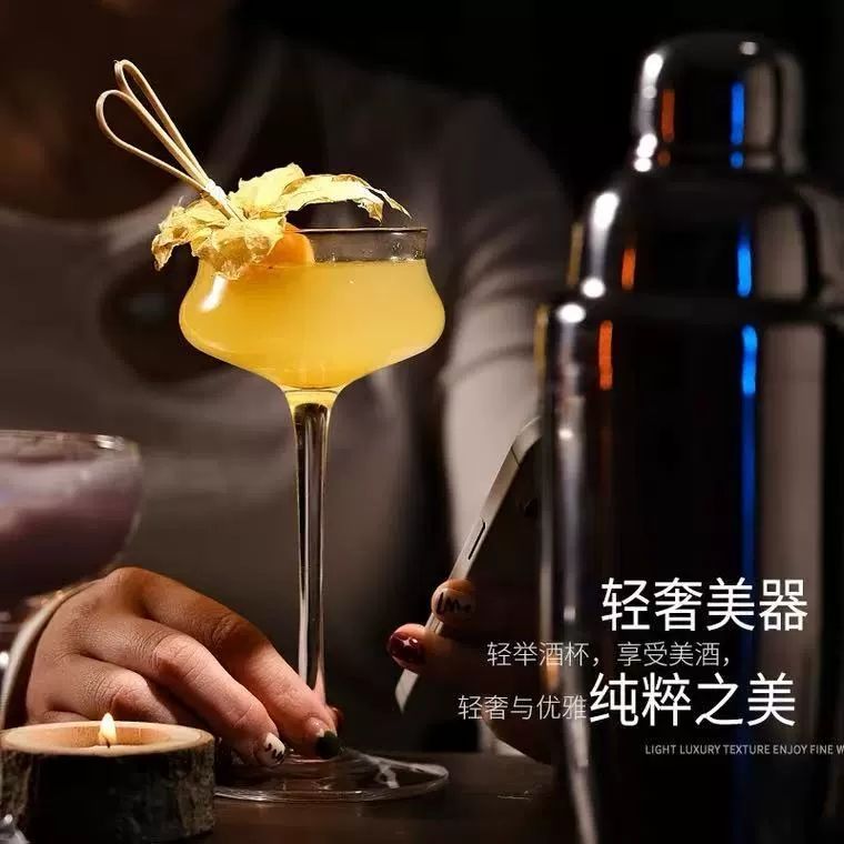 Copa de cóctel creativa de diseño moderno para ocasiones de fiesta alta y ligeramente Tipsy para vino dulce Martini y Margarita