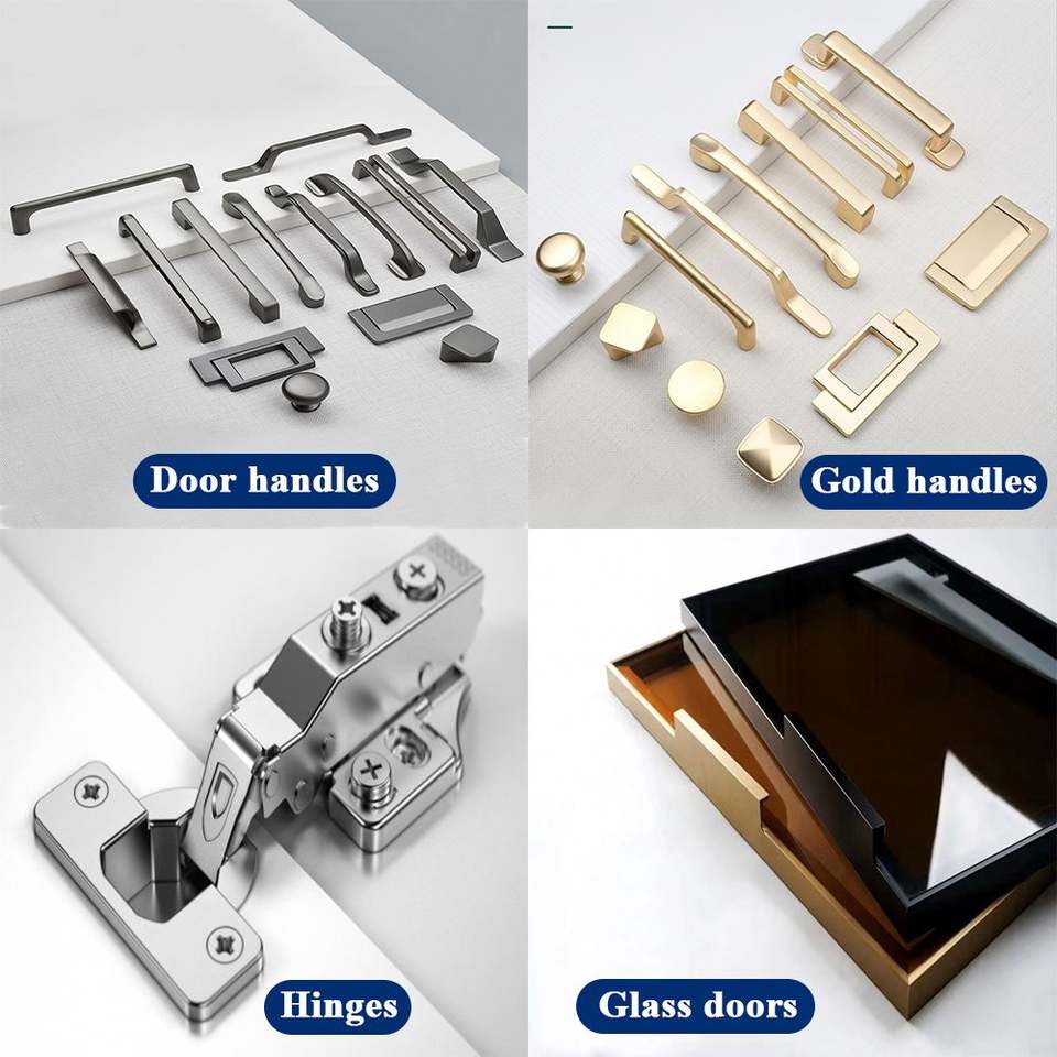 Bisagra, Protector contra salpicaduras, Corredera de extracción, Grifo, Asa y perilla, Bisagra, Sin