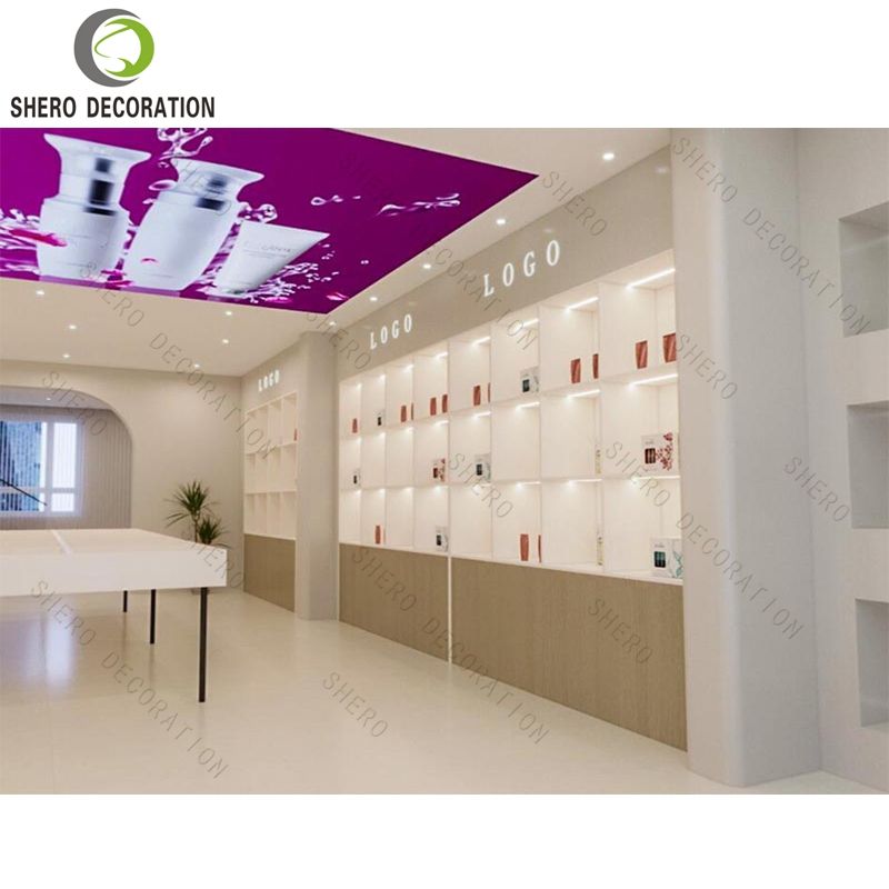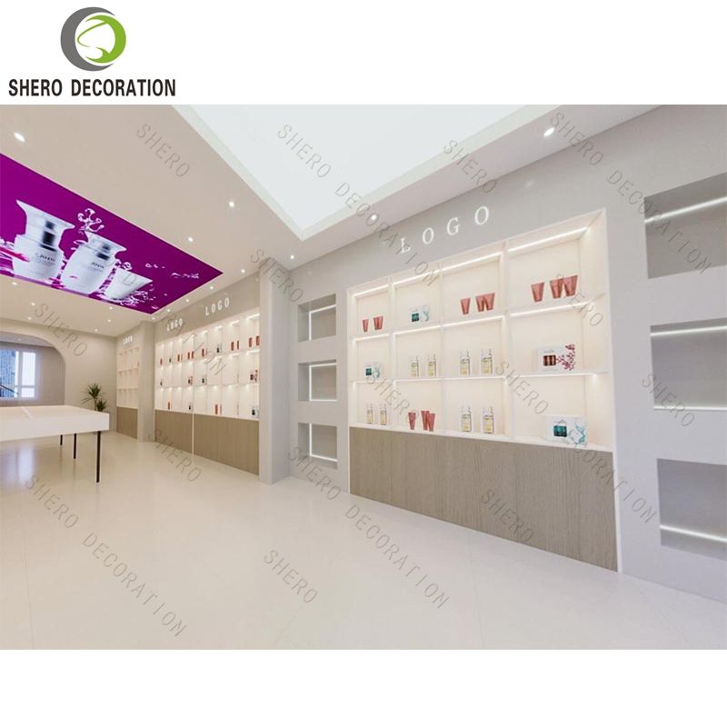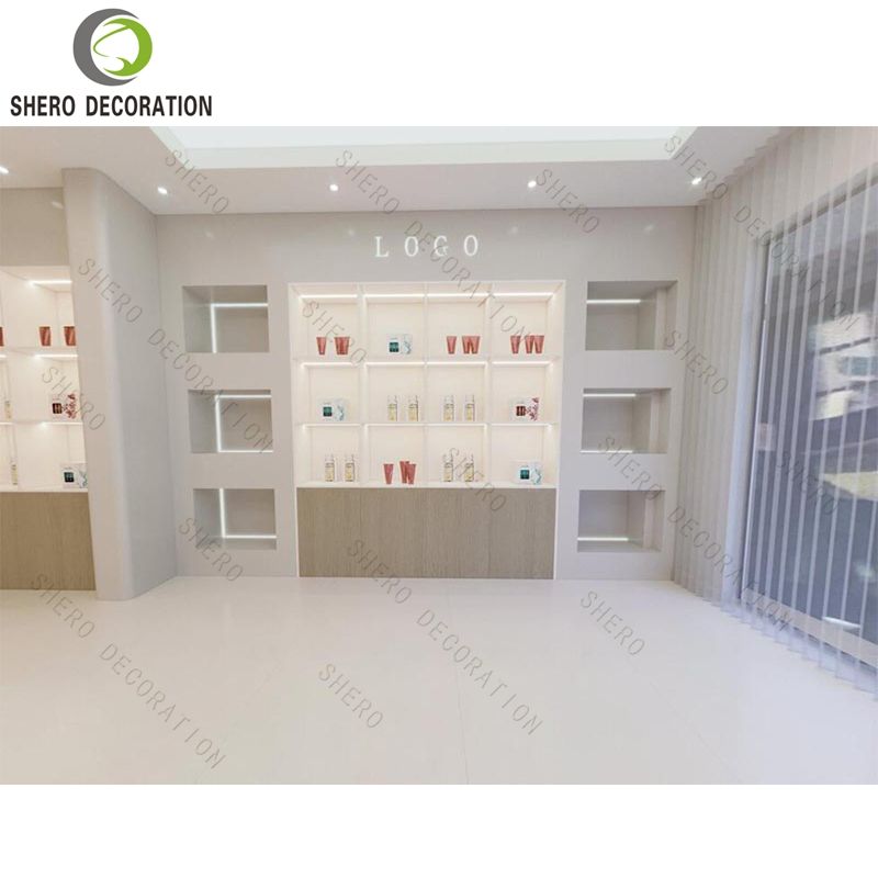 Mueble de Exhibición Blanco de Diseño Moderno y Alta Gama para Cosméticos, con Iluminación LED, para Tiendas de Perfumes y Vitrinas