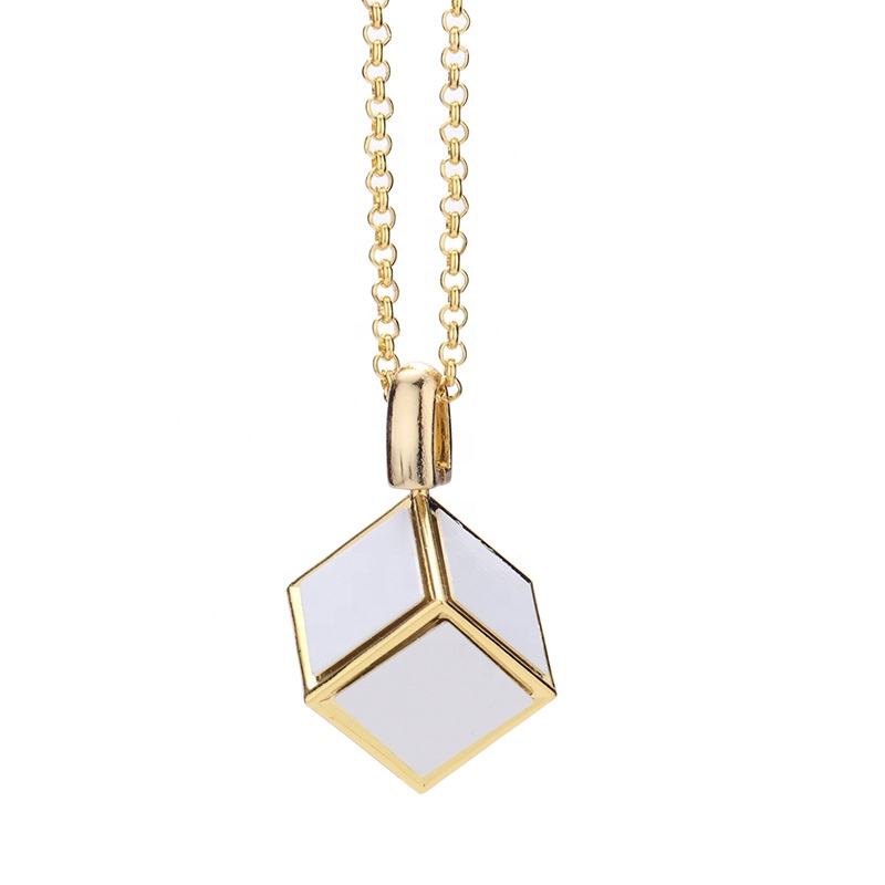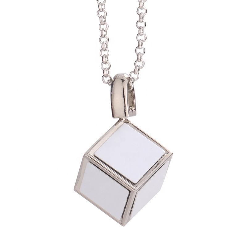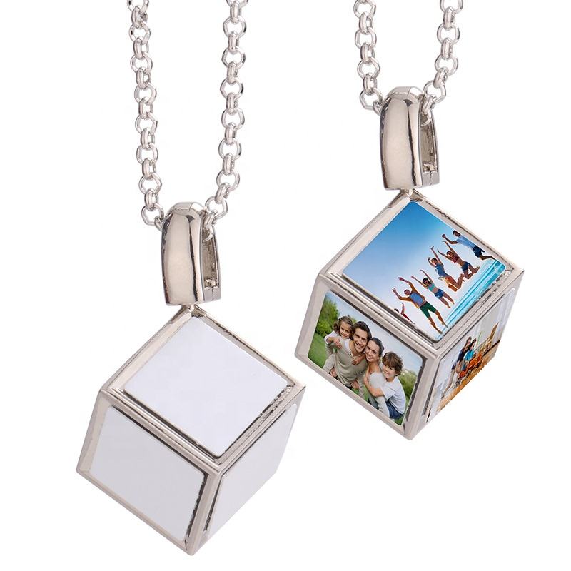 Diseño moderno, joyería personalizada, collar de cubo de sublimación, espacios en blanco para boda, regreso a la escuela, mamá, papá, regalos de graduación hechos de aleación
