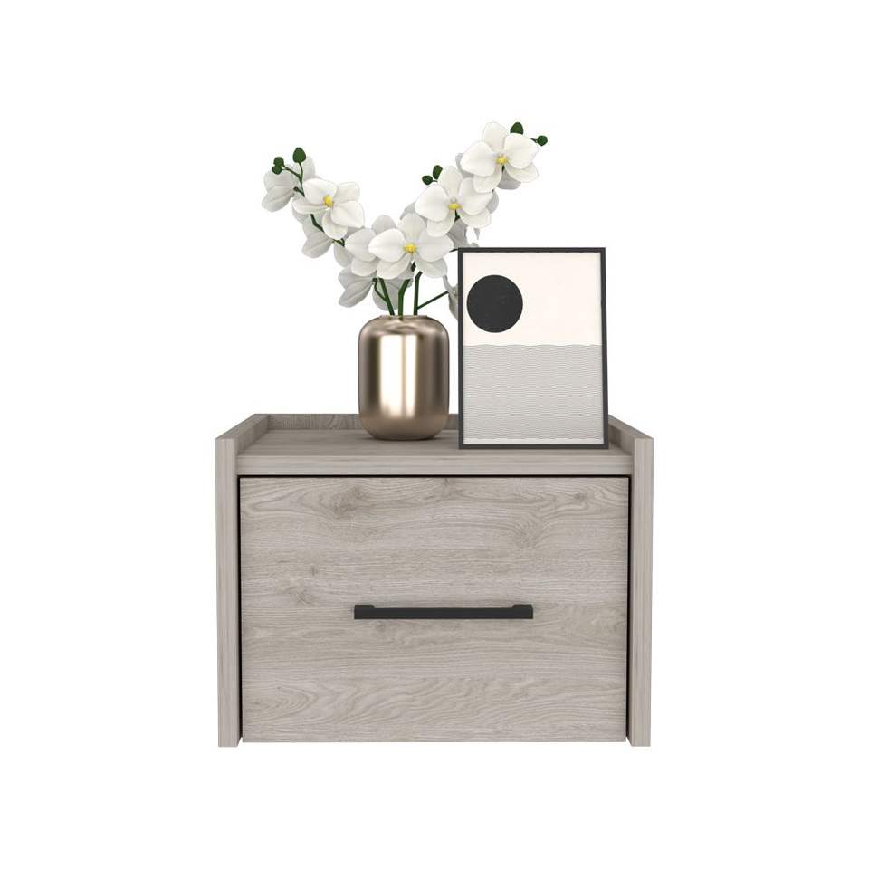 Mesita de noche flotante DB de diseño moderno para dormitorio, panel de madera gris claro para uso doméstico o hotelero