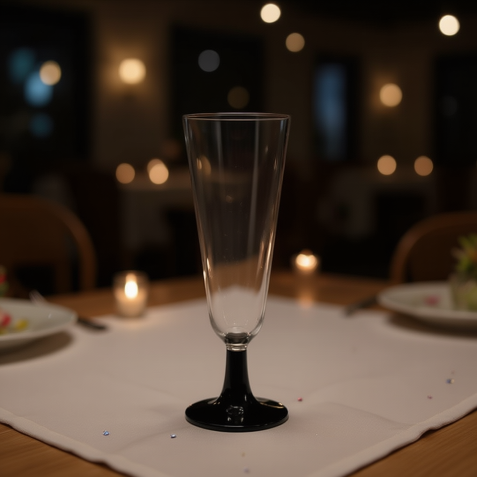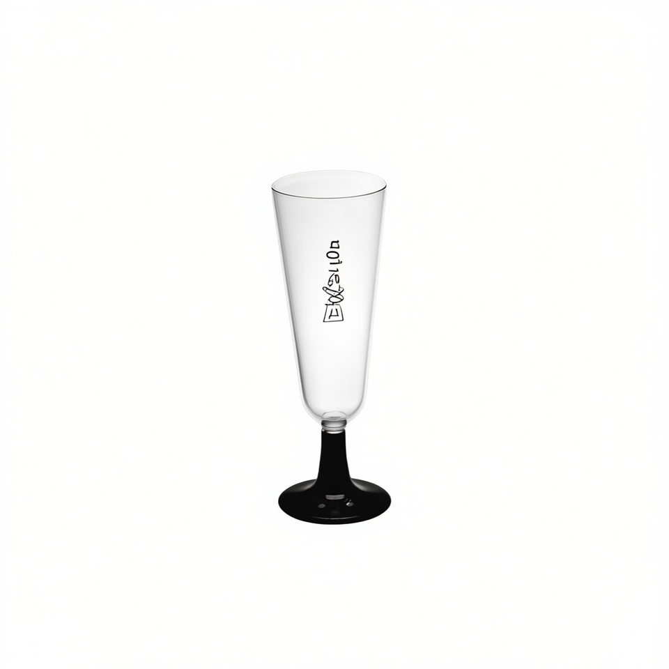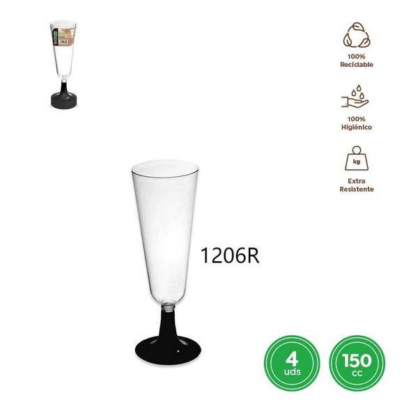 Copa de Cava Desechable de Diseño Moderno, 150CC, Plástico Transparente Negro PP para Champán, 1206R, Reutilizable, Múltiples Usos
