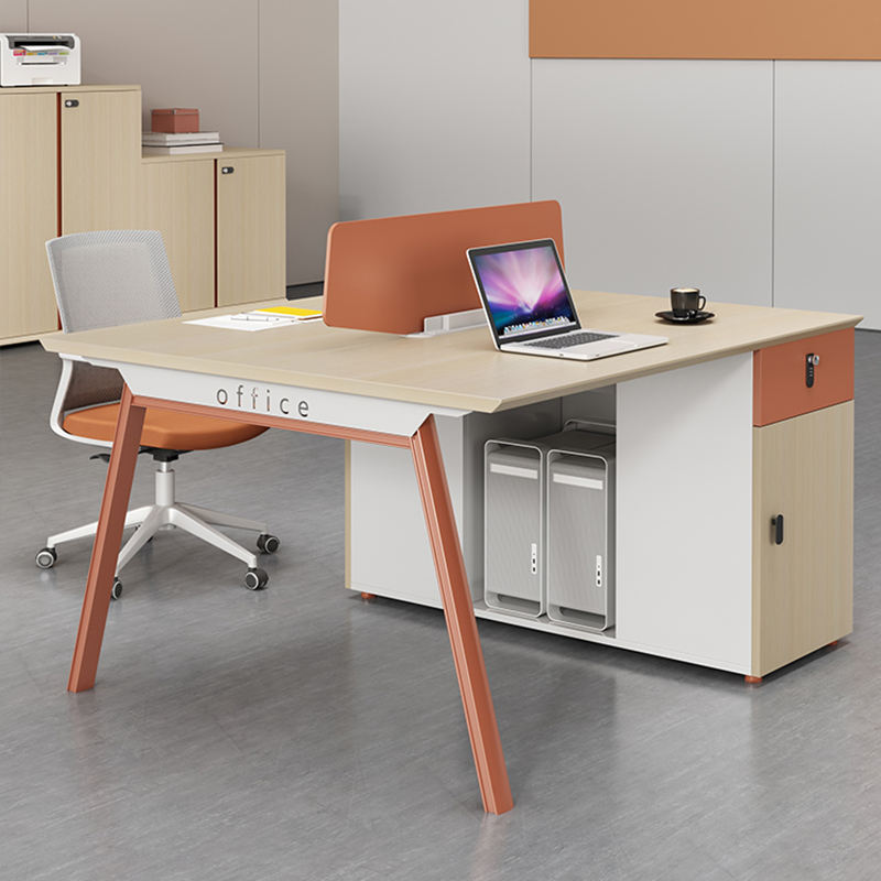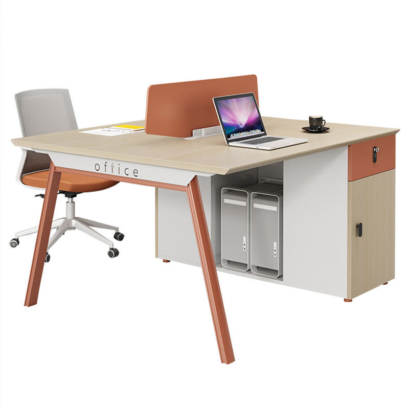Estación de trabajo de oficina MFC de color madera Modular dual para 4 personas de diseño moderno Muebles duraderos de buena calidad para el hogar con colores mezclados