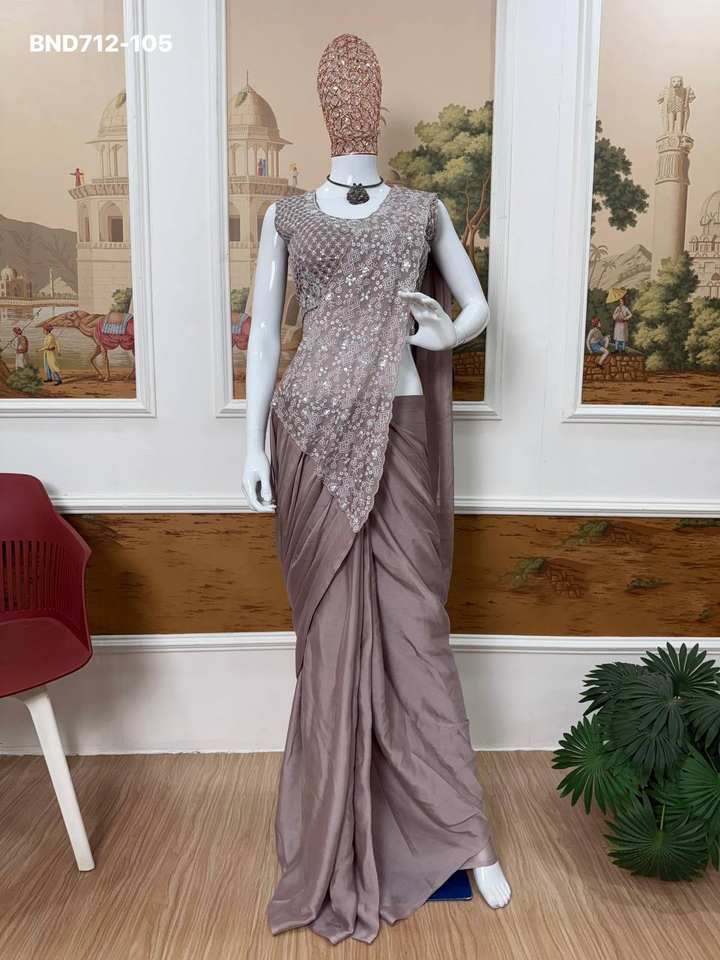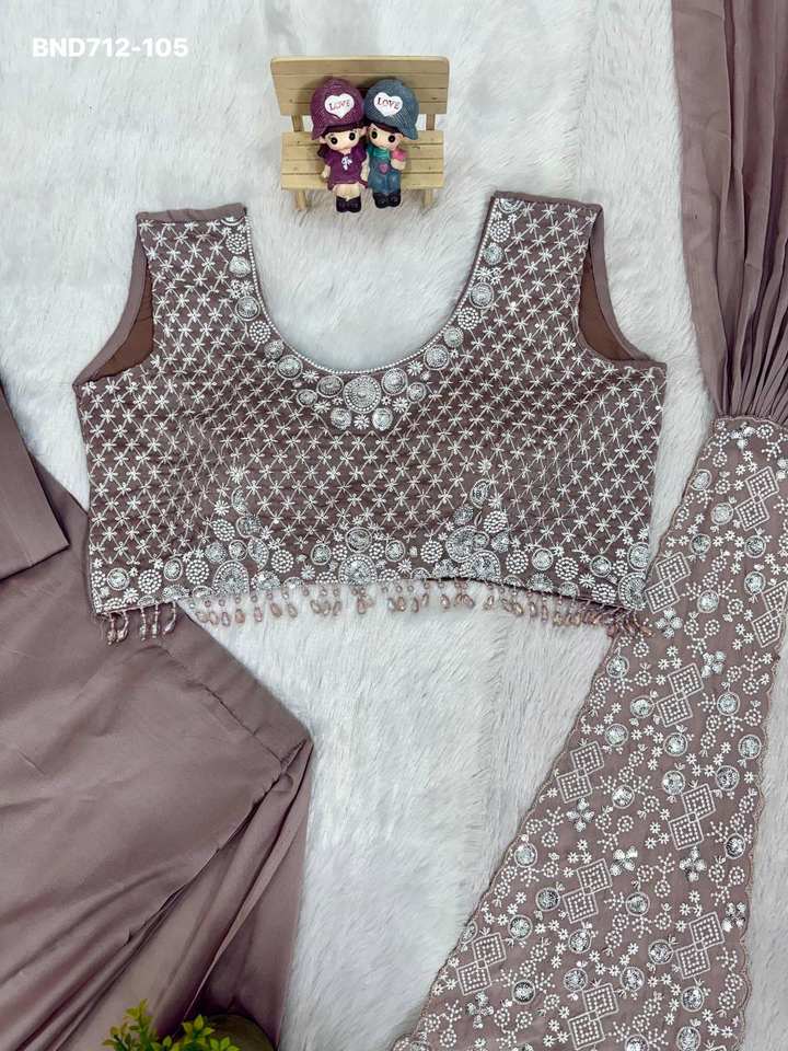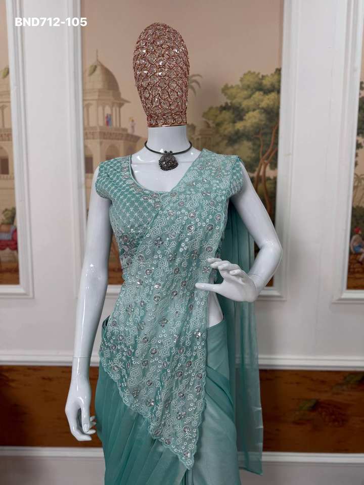Sari de Seda Rangoli de Diseño Moderno y Excelente Calidad con Bordado y Lentejuelas, Conjunto de Sari y Blusa, Proveedor y Exportador Mundial
