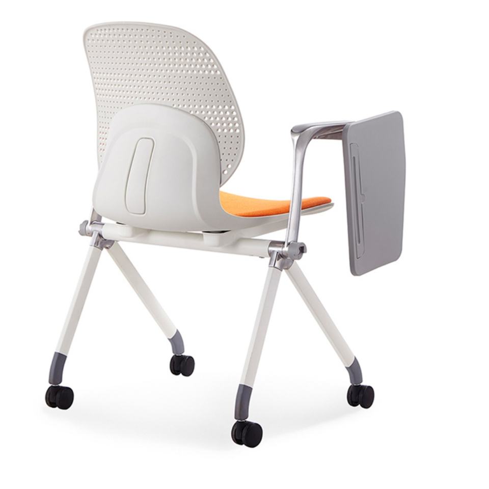 Silla Plegable de Diseño Moderno para Capacitación, Reuniones y Conferencias con Tableta de Escritura y Ruedas
