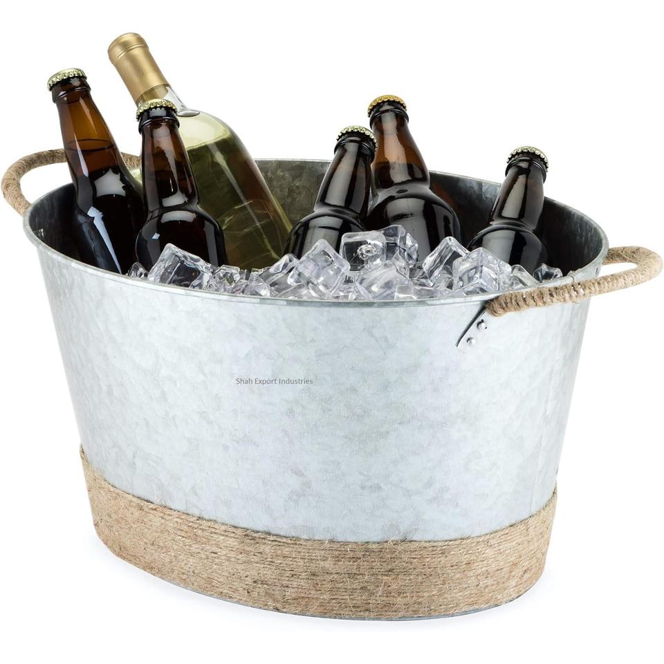 Cubo de hielo galvanizado de diseño moderno con mango, enfriador de vino ovalado para fiestas en el jardín al aire libre, Enfriador de cerveza para almacenamiento de alimentos