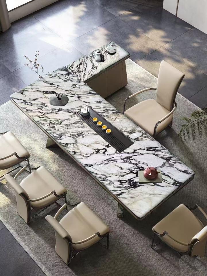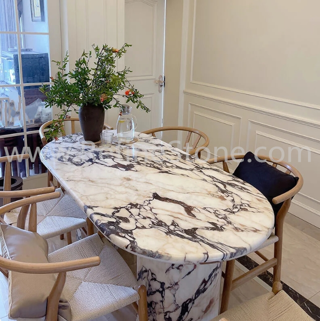 Mesa de centro de mármol Calacatta viola tallada a mano de diseño moderno superficie sólida piedra de vena púrpura italiana para villas de lujo