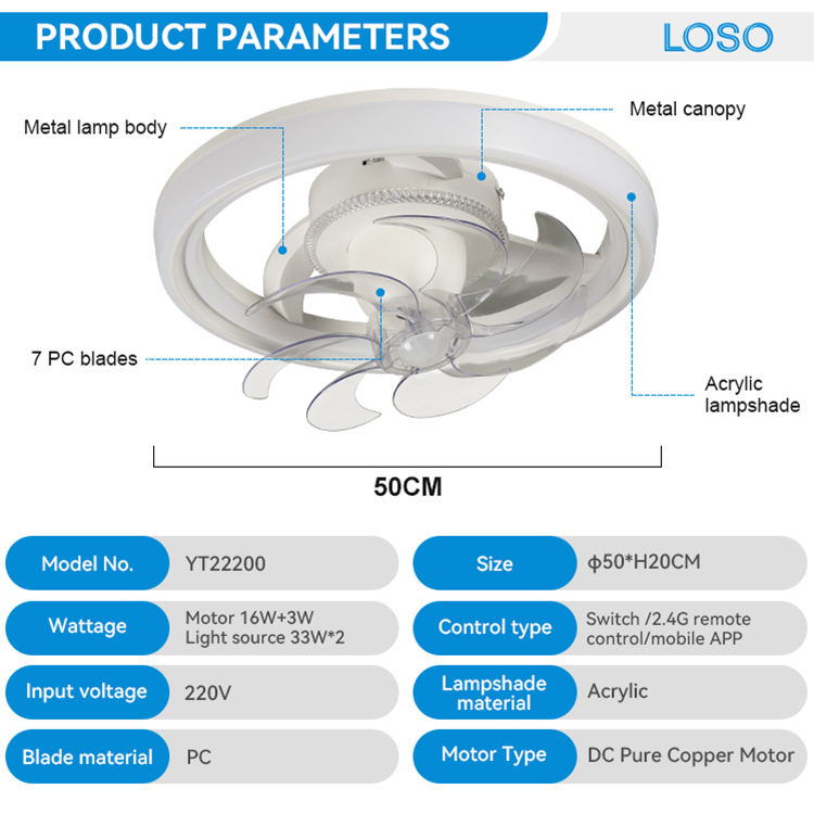 Nombre del producto:PC Control remoto LED Ventilador de techo con luz