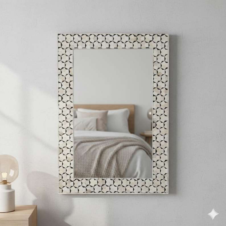 Espejos de pared de diseño moderno para decoración del hogar, marco de espejo con incrustaciones de hueso de calidad estándar, colgante de pared, montado en Interior, Exportación Global