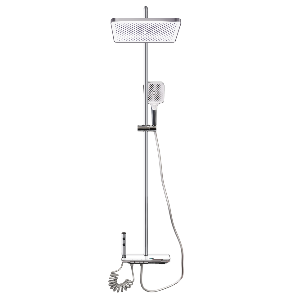 Grifo Mezclador de Agua Fría y Caliente de Diseño Moderno, Grifo Termostático Plateado para Ducha, Sistema de Cascada de Agua de Lluvia para Baño, Acero Inoxidable
