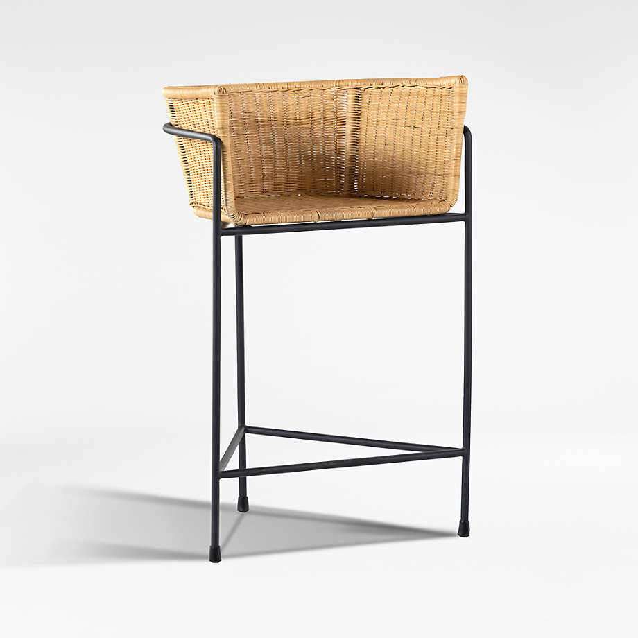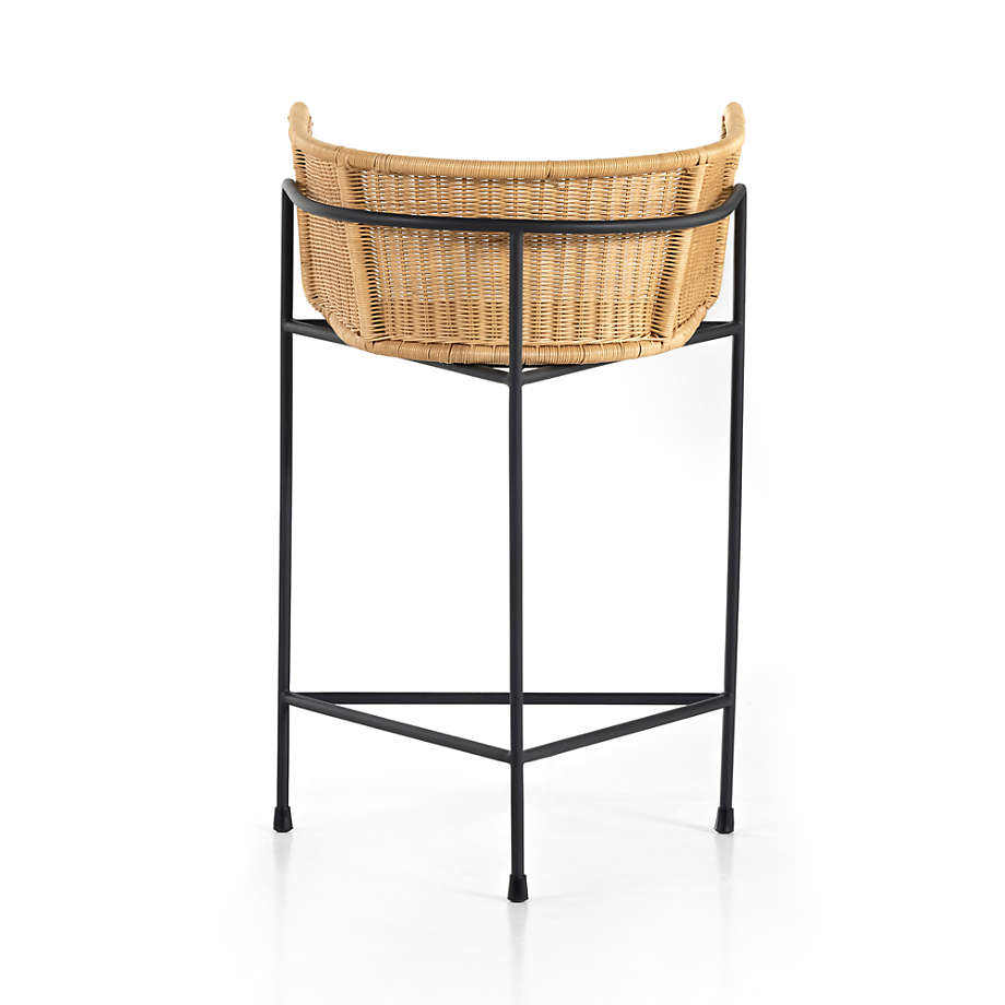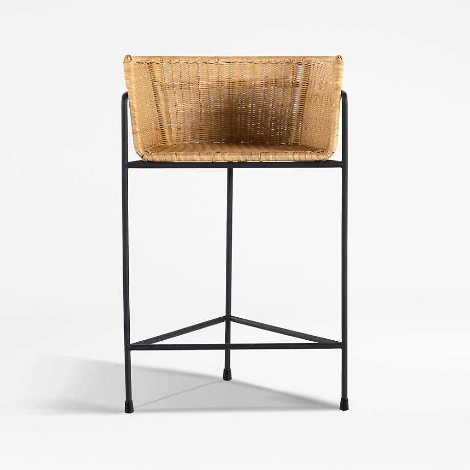 Taburete de Bar de Diseño Moderno con Estructura de Hierro y Asiento de Ratán Sintético Tejido para Uso en Interiores y Exteriores en el Hogar, Hotel, Sala de Estar