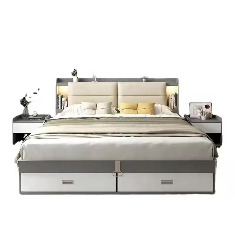 Marco de cama tamaño King de diseño moderno Marco de cama Queen Fabricación profesional Camas de madera Nueva tecnología para dormitorio u hotel