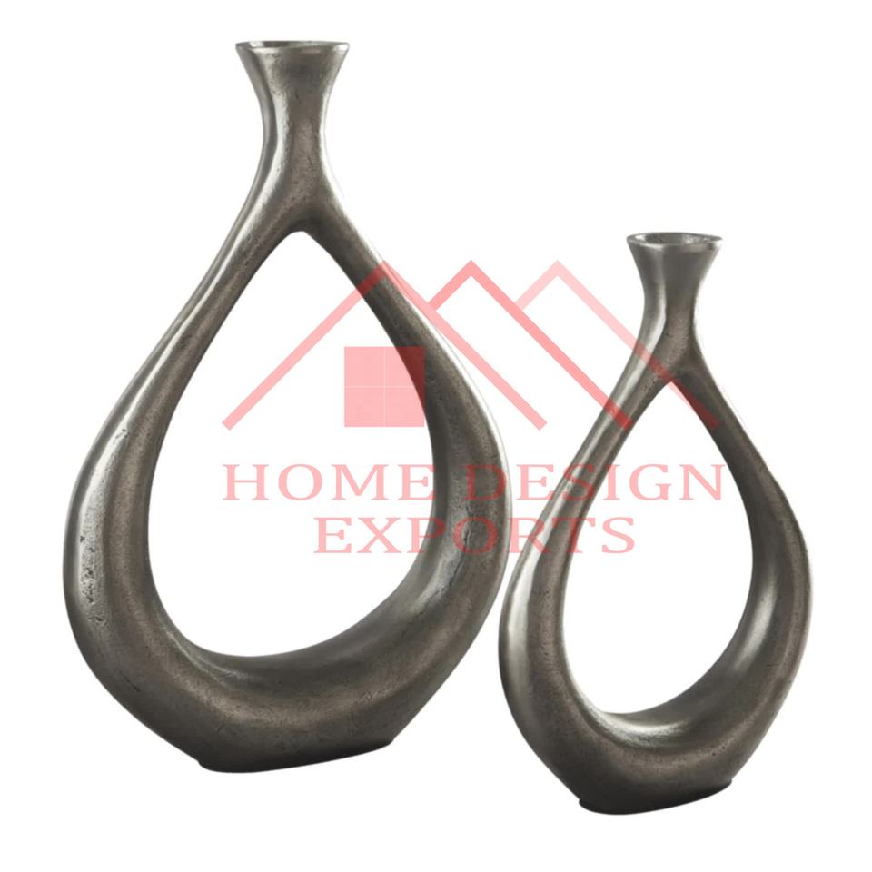 Juego de 2 jarrones de flores para sala de estar de diseño moderno, centros de mesa, jarrones de poste de flores FUNDIDOS DE ALUMINIO para decoraciones del hogar