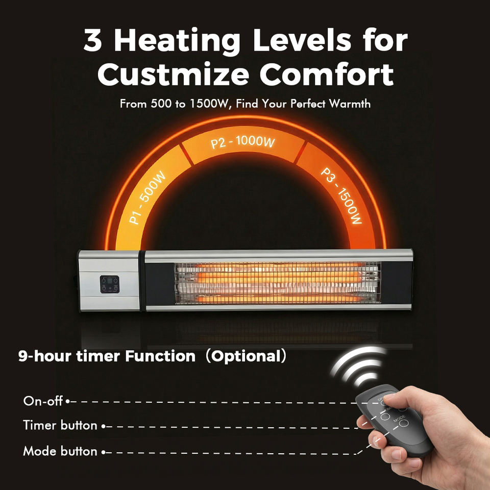 Calentador Eléctrico de Patio de Cuarzo para Exteriores, Diseño Moderno, 1800W