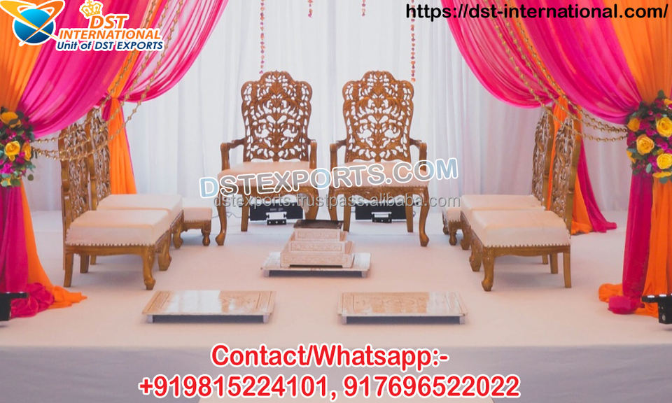 Juego de sillas Mandap de diseño moderno para bodas hindúes Juego de sillas Mandap de diseño elegante Juego de sillas de madera para matrimonio hindú Mandap UK
