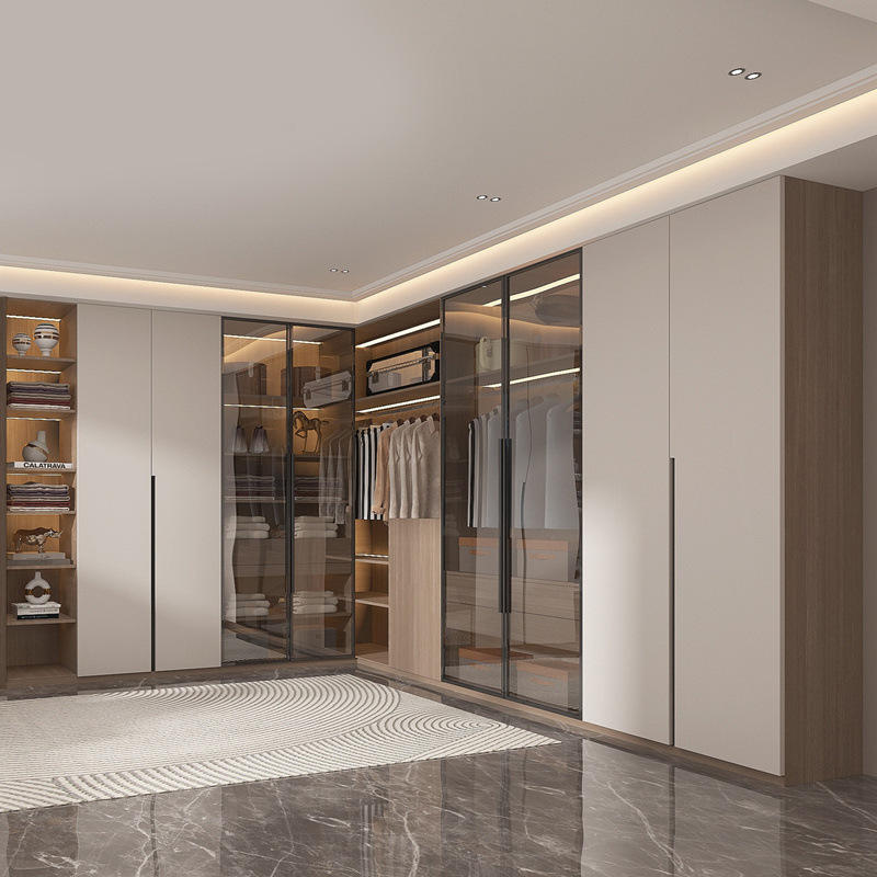 Juego de dormitorio de MDF de mango de diseño moderno con almacenamiento fuerte, armario a prueba de polvo, muebles de plástico para el hogar para colgar ropa