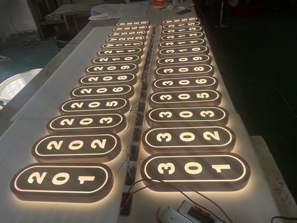 Caja de luz LED de Material acrílico de Metal de diseño moderno, juego de caja de luz de número de decoración de Casa de Hotel con iluminación frontal personalizable