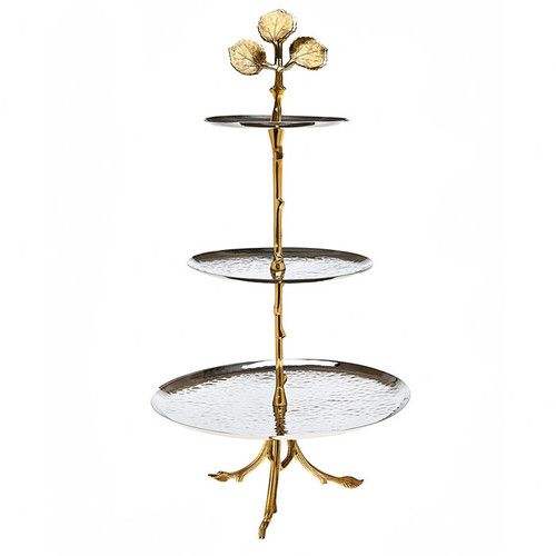 Soporte de metal de diseño moderno para decoración del hogar, exhibición de postres, con base resistente y apariencia elegante.