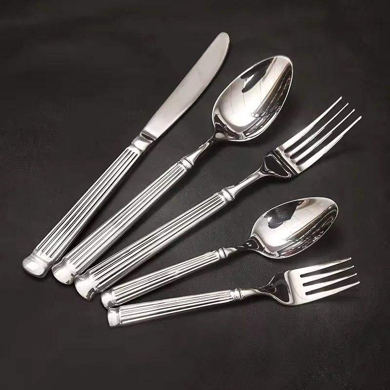 Juego de cubiertos y vajilla de metal de diseño moderno con nuevo logotipo y diseño personalizados