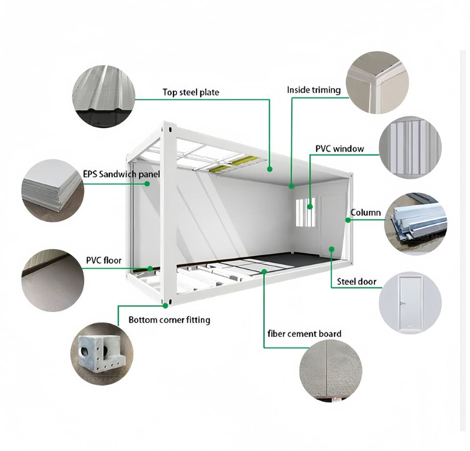 Ecológico y rentable, Flexible, modular y ampliable, Excelente aislamiento térmico y acústico, Estructura Fuerte y Duradera, Instalación y Desmontaje Rápidos, Diseño plegable que ahorra espacio
