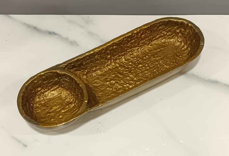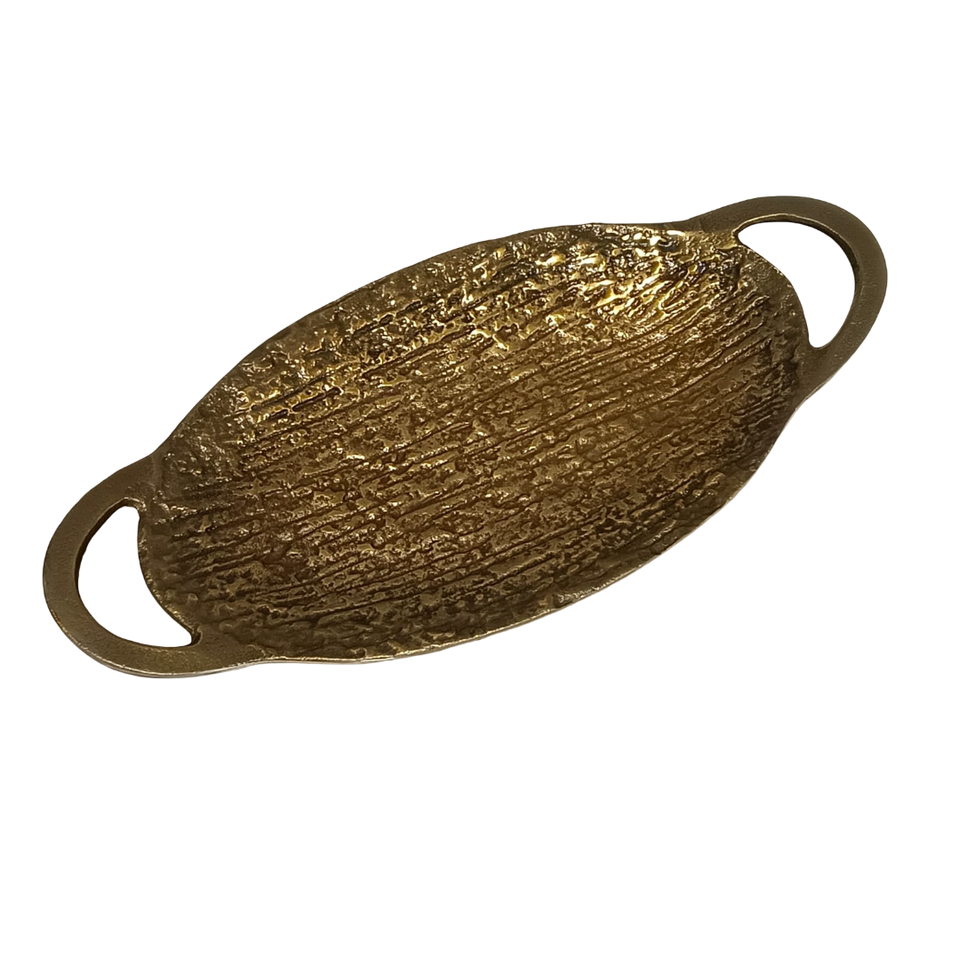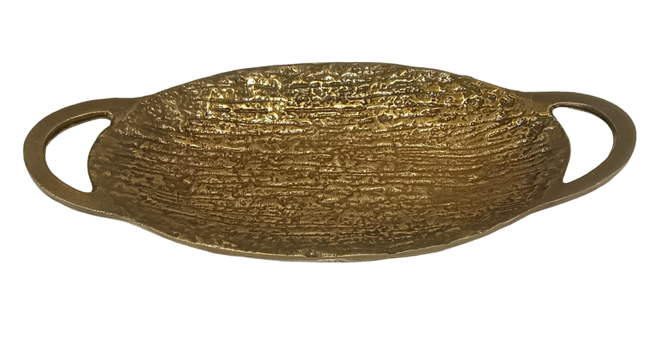 Bandeja de Servicio Ovalada de Aluminio Fundido de Diseño Moderno y Multifuncional, con Dos Partes, Acabado Texturizado Decorativo y Patrón Escénico