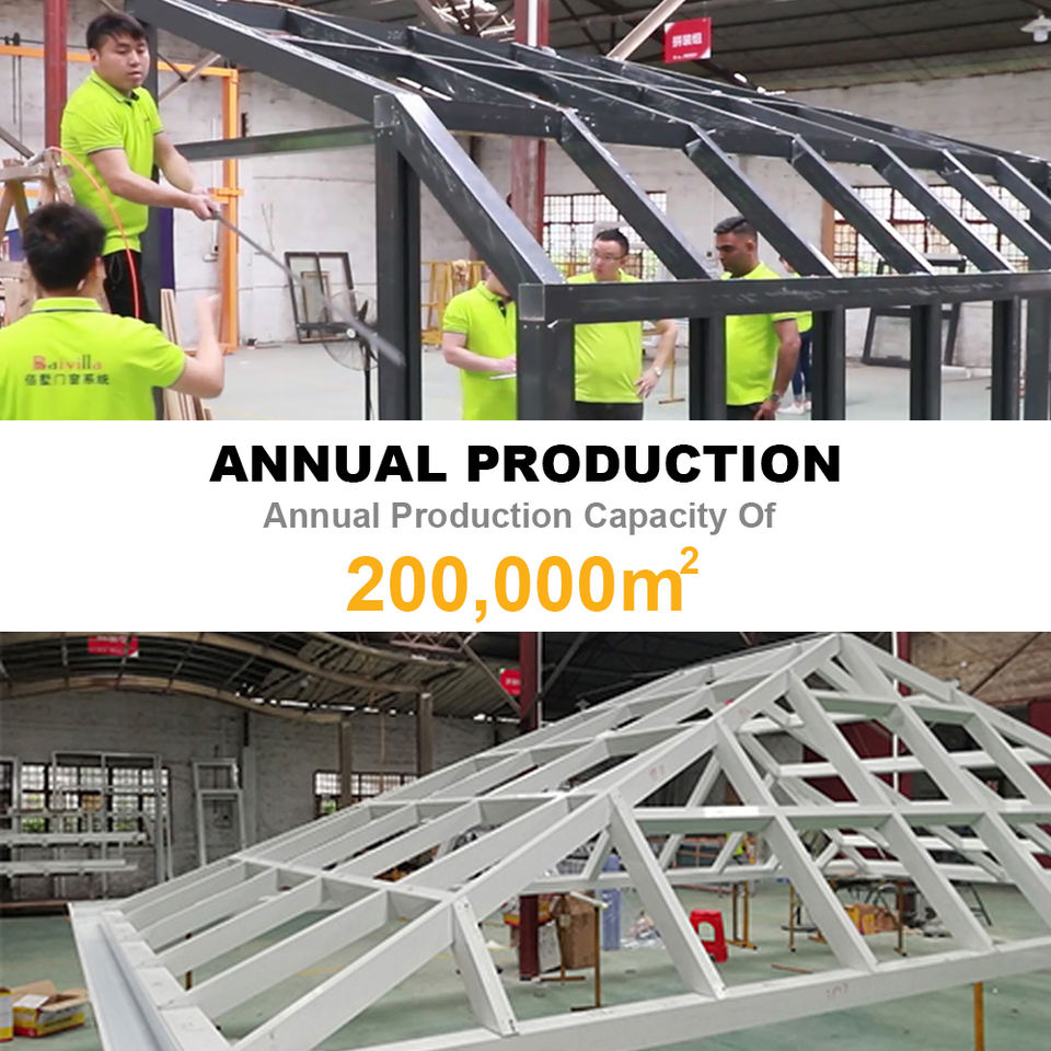 Casa solar de cuatro estaciones independiente para exteriores de diseño moderno con techo Delgado Casa de vidrio laminado de moldura prefabricada para campos de golf