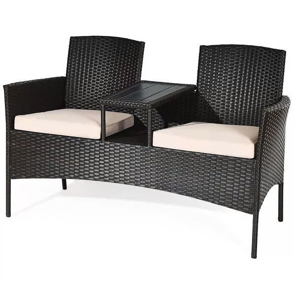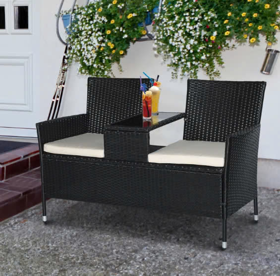 Silla de mimbre de jardín al aire libre de diseño moderno y Love Seat Caja de mesa de 2 plazas Fabricación de Vietnam Muebles de mimbre para patio