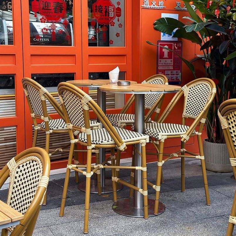 Silla impermeable de mimbre de PVC de diseño moderno, muebles de mimbre para exteriores, juego de silla y mesa de ratán para hoteles y parques