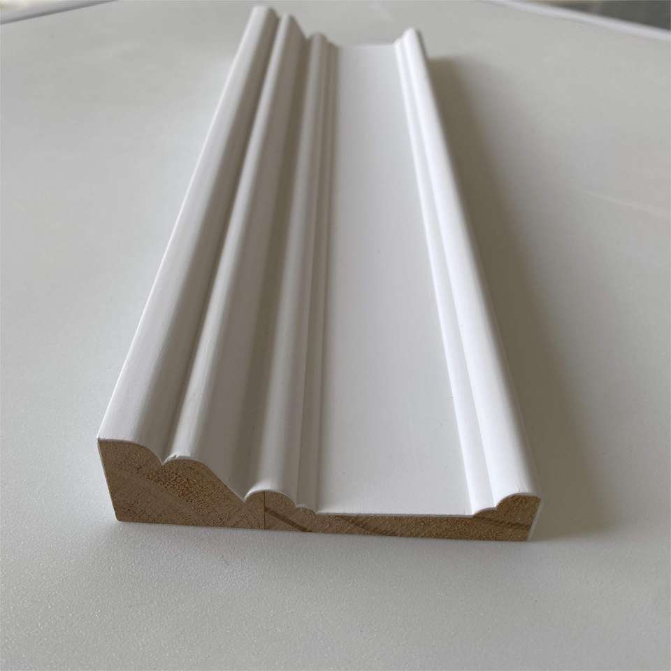 Nombre:Moldura de corona decorativa de madera de pino con ensamblaje de dedos imprimada