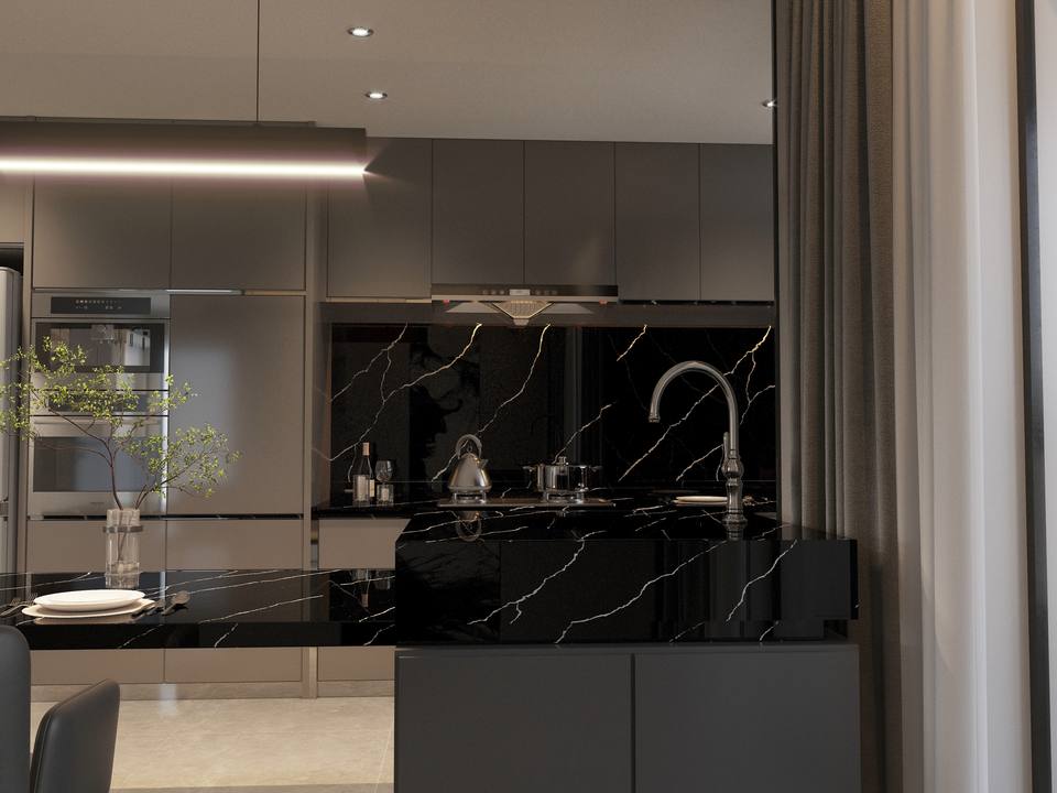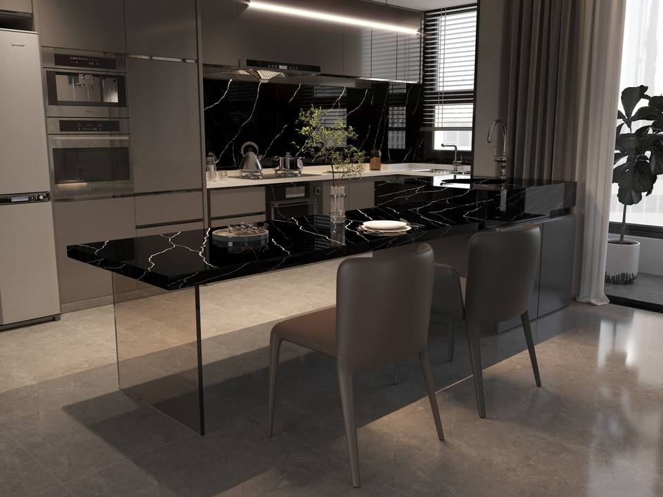 Stone Name:Artificial Calacatta Black Quartz Slab