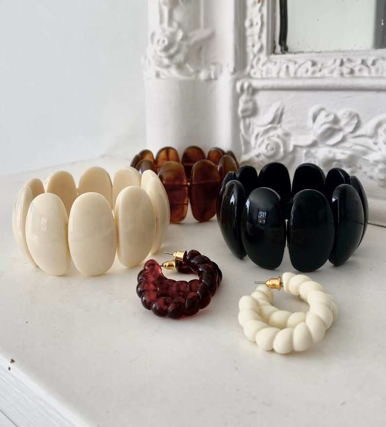 Brazaletes de resina de diseño moderno con elementos orgánicos naturales en el interior para niñas y mujeres amantes de la moda
