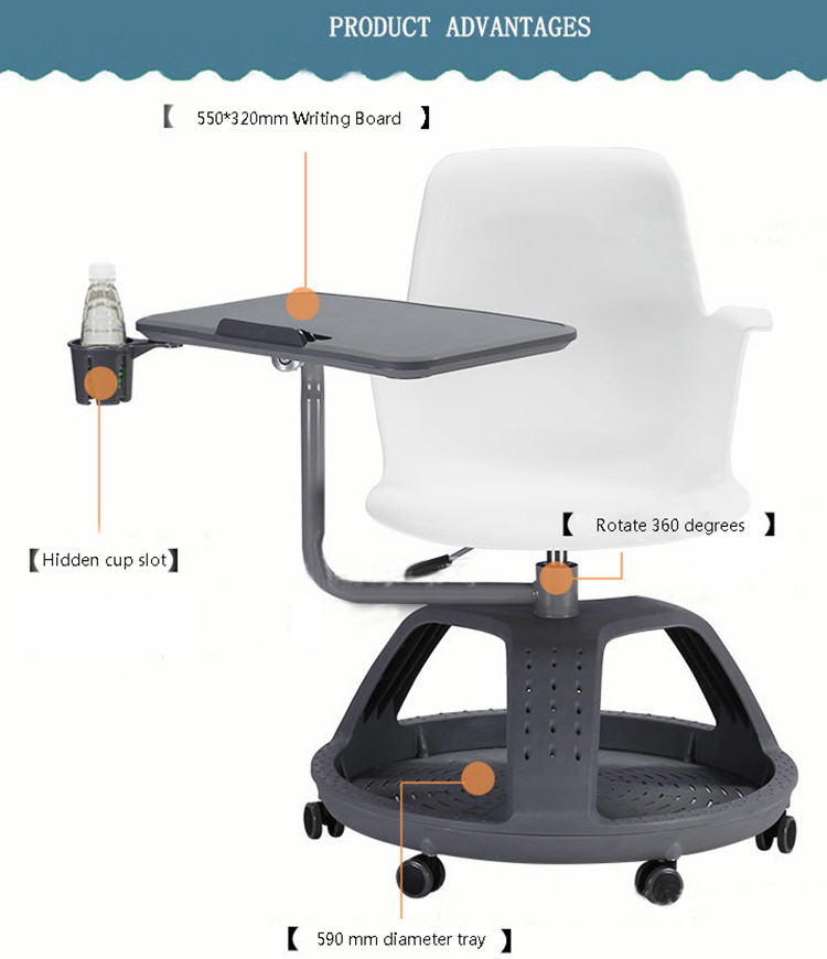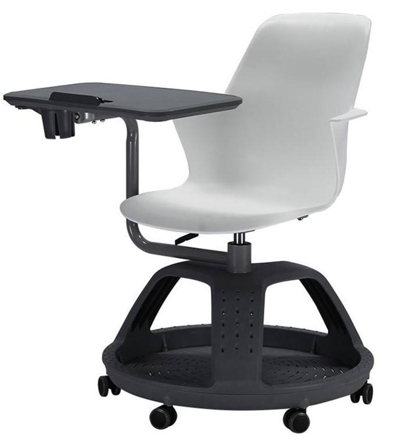 Silla de entrenamiento de plástico para reuniones giratorias de diseño moderno con tablero de escritura para biblioteca, aula, silla de estudio para estudiantes