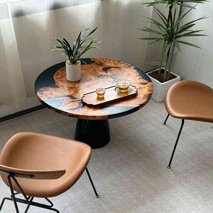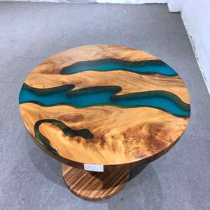 Mesa de Centro Redonda de Diseño Moderno en Madera con Forma Natural y Acabado en Resina Epoxi, Mueble para Comedor