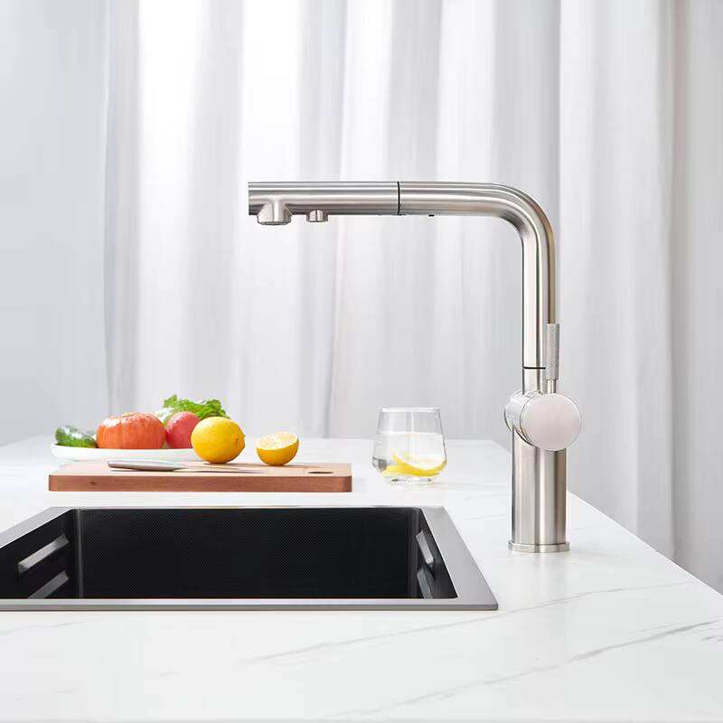 Grifo Mezclador de Agua Potable para Cocina de Diseño Moderno con Filtro RO de 3 Vías y Acero Inoxidable SUS304