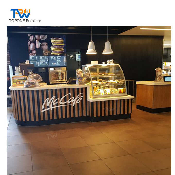 Mostrador de Barra para Cafetería MC Donald de Diseño Moderno con Superficie Sólida y Exhibición