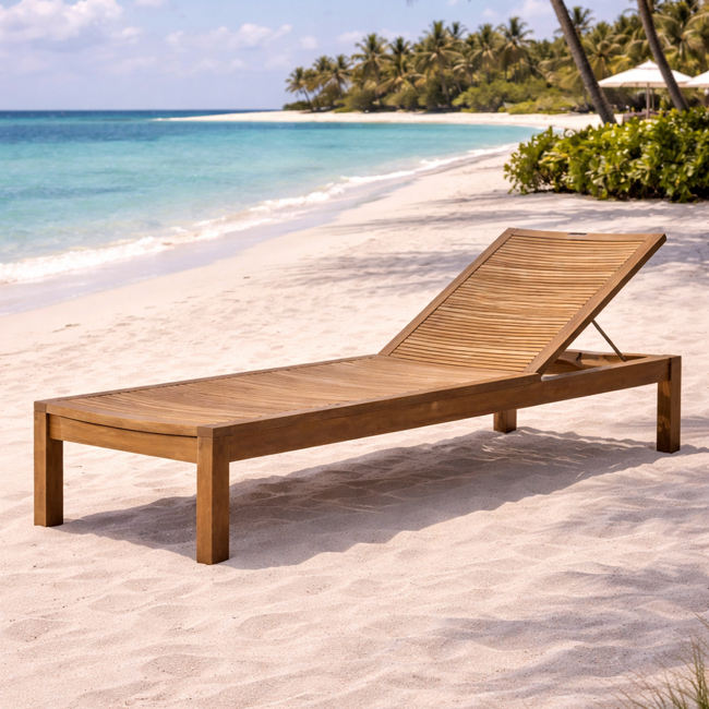 Tumbona de Madera de Teca Maciza de Diseño Moderno con Soporte de Ajuste de Metal, Silla de Playa Reclinable Plegable para Patio, Venta al por Mayor de Fábrica