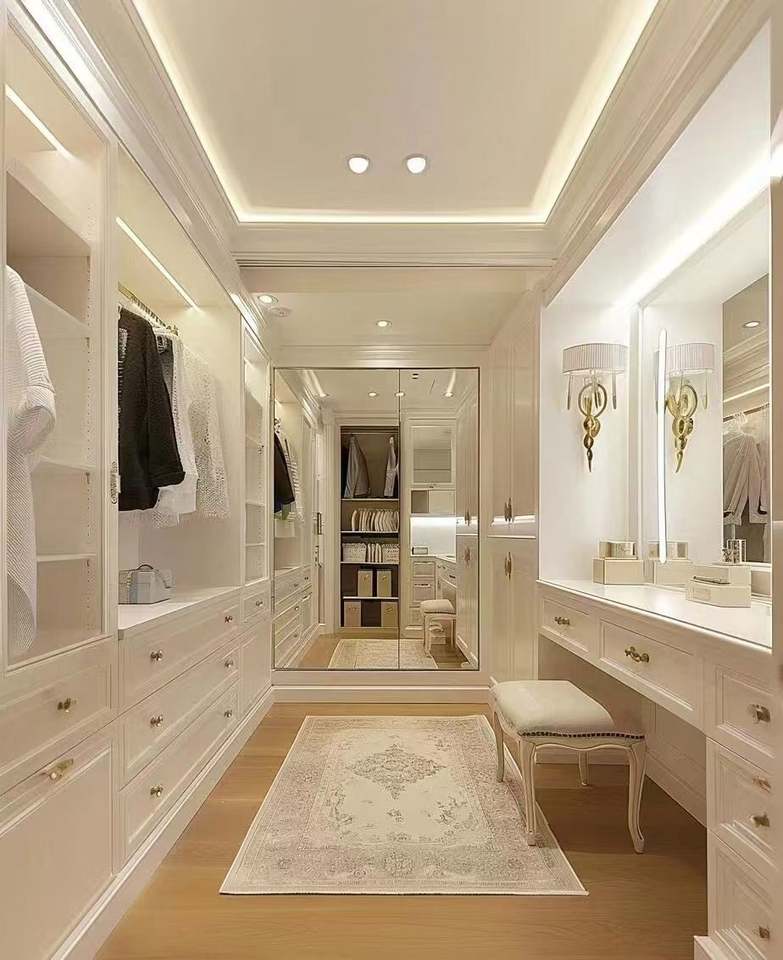 Juego de guardarropa de aluminio y madera maciza de diseño moderno para dormitorio, puerta de MDF de almacenamiento de gran espacio Popular personalizada para ropa