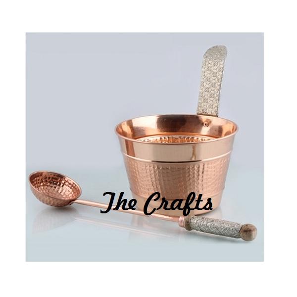 Cubo y Cucharón de Sauna de Diseño Moderno en Acero Inoxidable Color Plata con Mango de Madera para Accesorios de Sauna