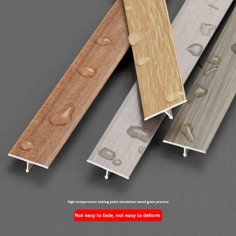 Tira de umbral en forma de T de diseño moderno, tira de borde de grano de madera de aleación de aluminio para piso y azulejo, costura plana incrustada para sala de estar