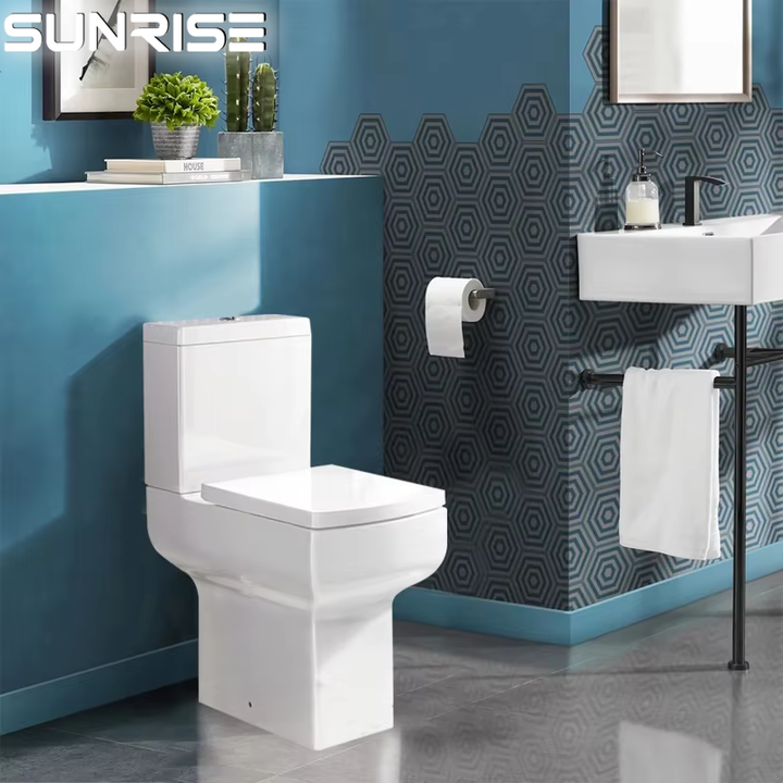 Inodoro de cerámica moderno de dos piezas con trampa en P cuadrada, juegos de Inodoro montados en el suelo, artículos sanitarios de baño, lavabo de agua