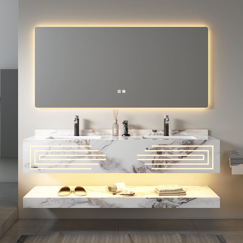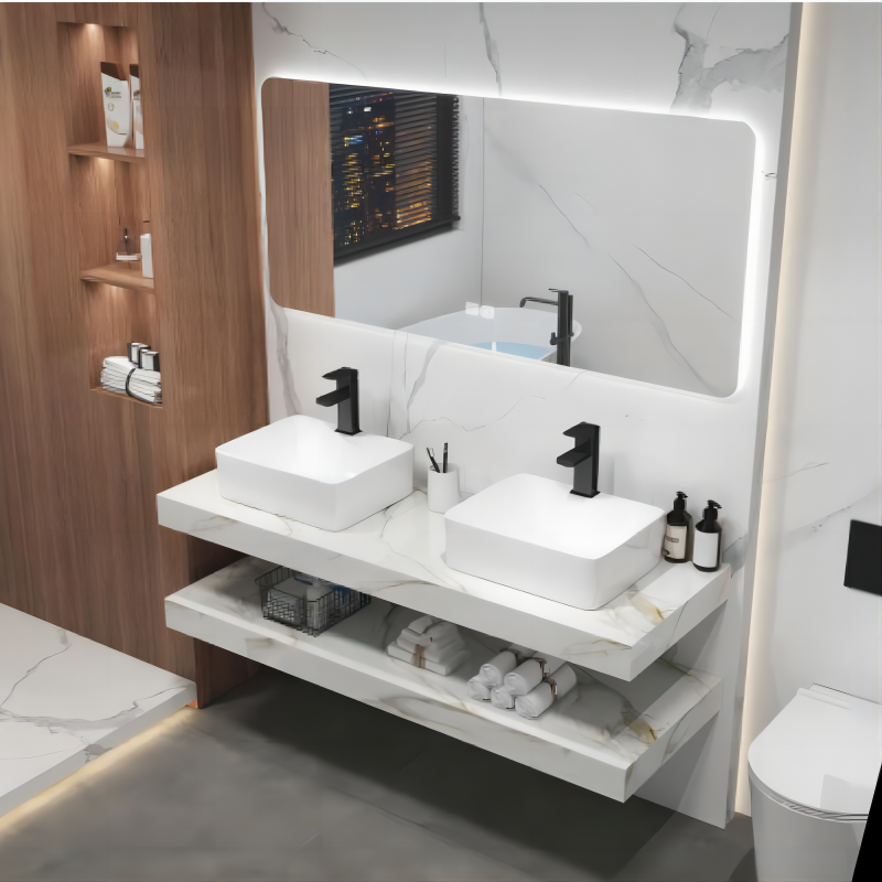 Lavabo Doble de Pared con Diseño Moderno, Lavamanos de Pizarra con Escurridor, Fácil de Limpiar, Tamaño Grande para Baño