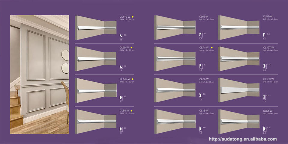 Rodapié Interior Moderno, Impermeable, Reciclable y Ecológico, Material de Poliestireno, Fácil Instalación, para Hoteles