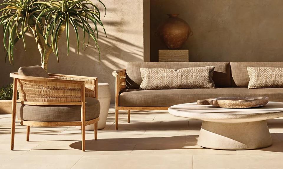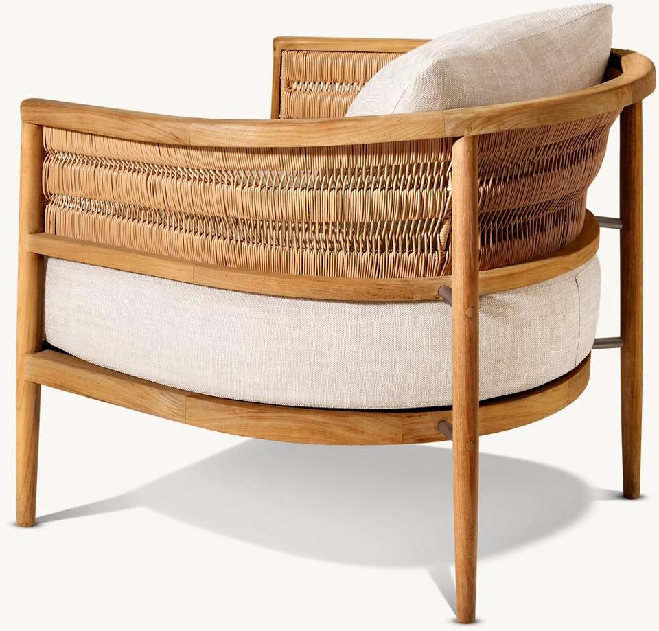 Sillón de Ratán de Teca Envejecida de Diseño Moderno con Cojín de Tela para Exteriores, Sillón Nusa de Teca