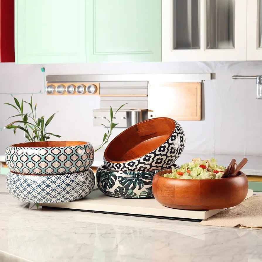 Tazón de madera de diseño moderno, utensilios de cocina multiusos, tazón de comida para ensaladas y frutas, tazón para servir