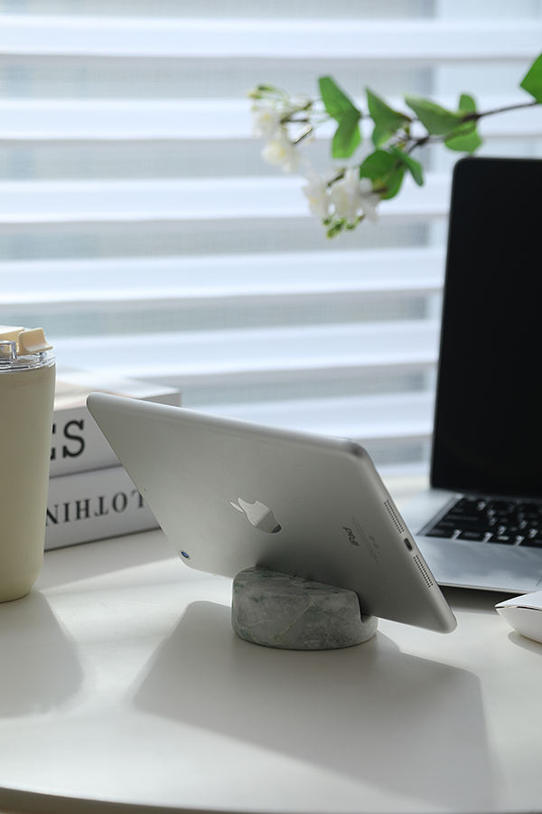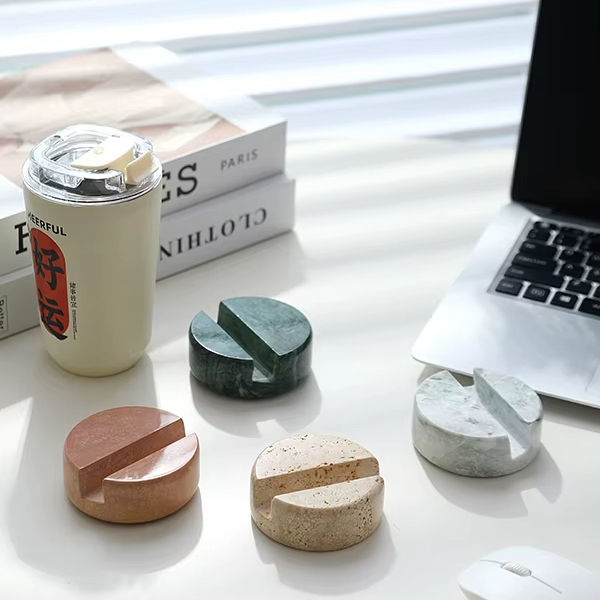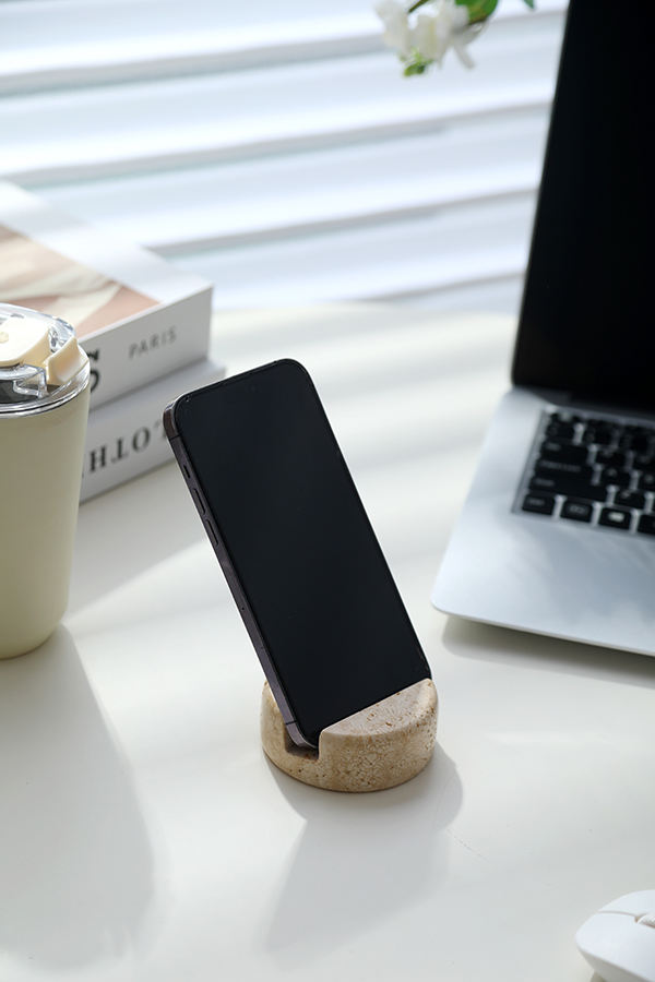 Accesorios electrónicos de diseño moderno portátil Mini iphone ipad holder hechos de piedra de mármol travertino natural para uso en escritorio