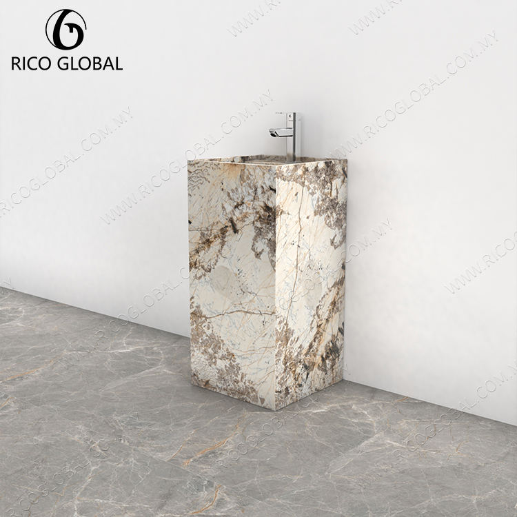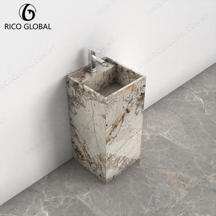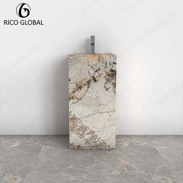 Lavabo de Pedestal de Piedra Natural con Textura de Empalme de Diseño Moderno para Mueble de Baño