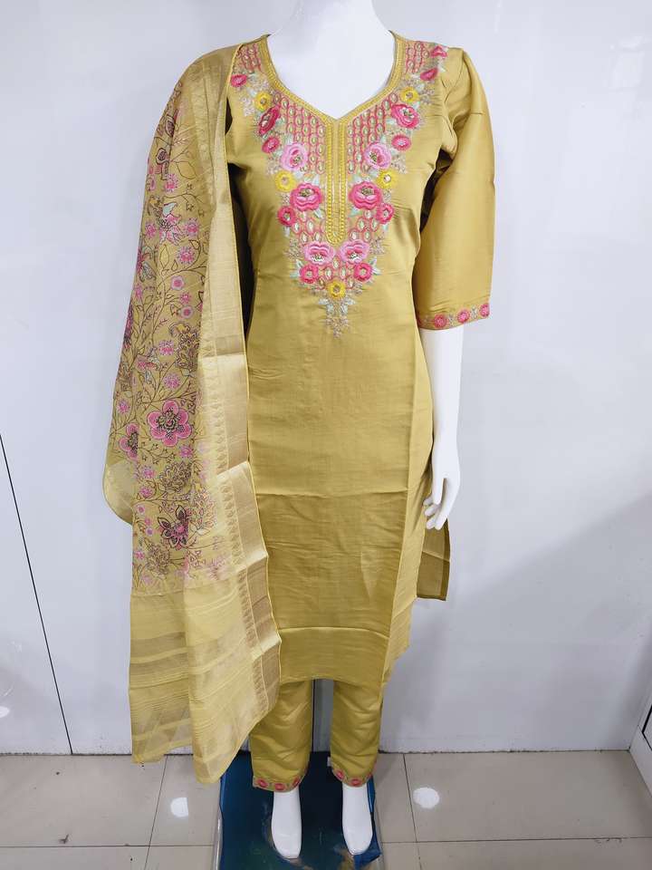 Nombre del producto:Hermoso pesado seda Kurti Pant & Dupatta con bordado de trabajo