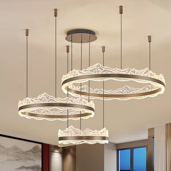 Candelabro de luz de anillo de gama alta de diseñador moderno para comedor, mesa de Bar privada, nuevo estilo de restaurante chino, altura ajustable
